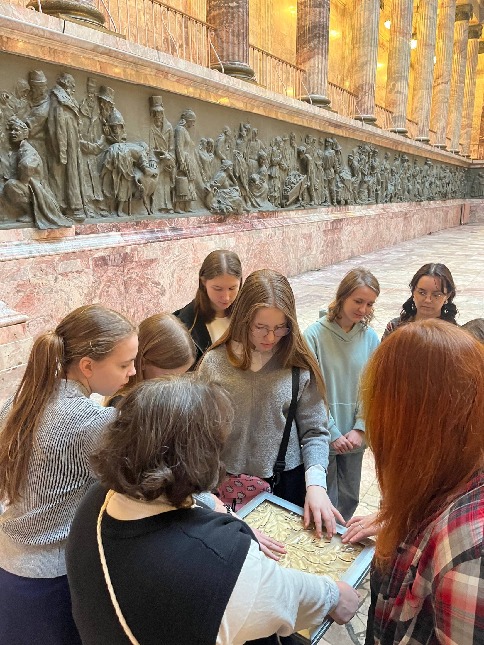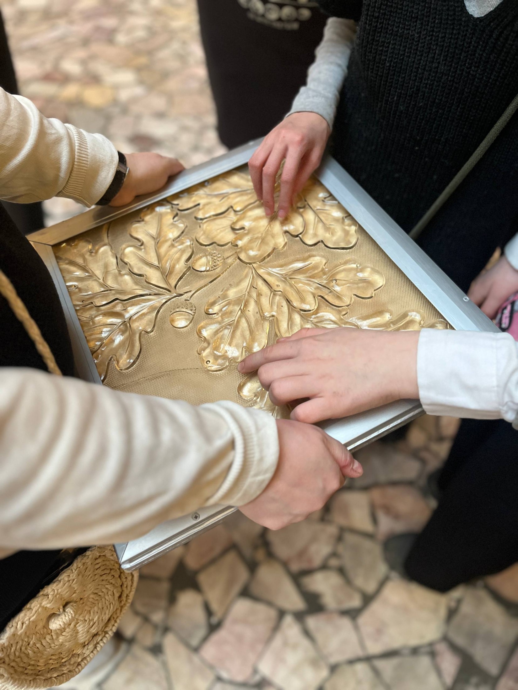 Участники проекта из коррекционной школы-интерната №2 для слабовидящих детей посетили экскурсию по Российскому этнографическому музею. А 12 марта в Лицее им. Б.В. Иогансона при Российской академии художеств для них состоялся творческий мастер-класс под руководством заместителя директора по творческо-выставочной работе Елены Васильевны Дмитриенко.